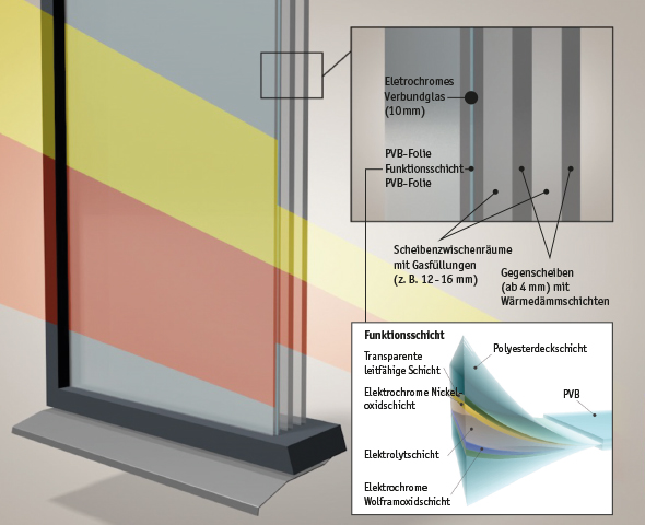 Die Funktionsschicht liegt geschützt in einem Verbundglas.